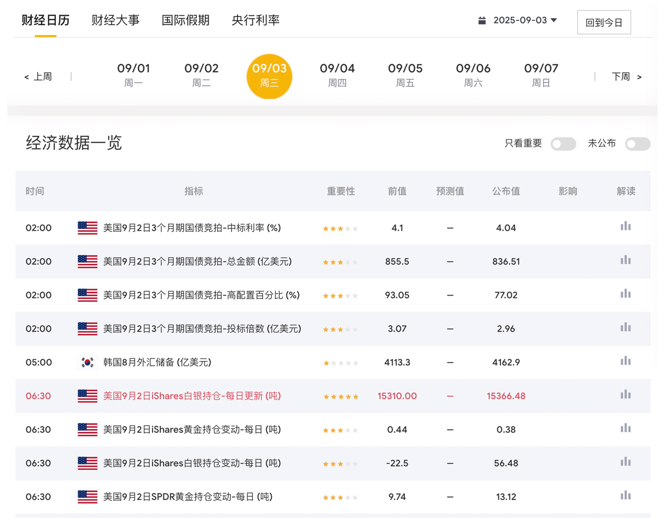 1. 财经日历列表